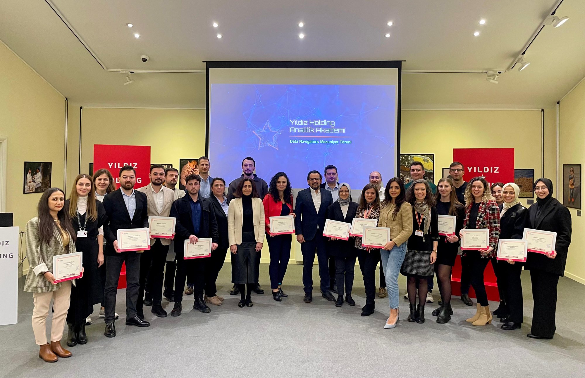 Yıldız Holding’de üst yönetimden genç yeteneklere kadar tüm çalışanlarımızın veri odaklı teknolojilere adaptasyonunu desteklemek amacıyla Koç Üniversitesi iş birliğiyle organize ettiğimiz Analitik Akademi, Data Navigators programının 10. dönemi tamamlandı. Yapay zeka, makine öğrenmesi gibi çağın en önemli teknolojilerinin temelini oluşturan veri bilimi alanında yetkinlik kazanan mezunlarımız, kapanış konuşmasını Yönetim Kurulu Başkan Vekilimiz ve CEO’muz Mehmet Tütüncü’nün yaptığı törenle sertifikalarını teslim alırken tamamladıkları projelerin sunumunu da yaptılar.